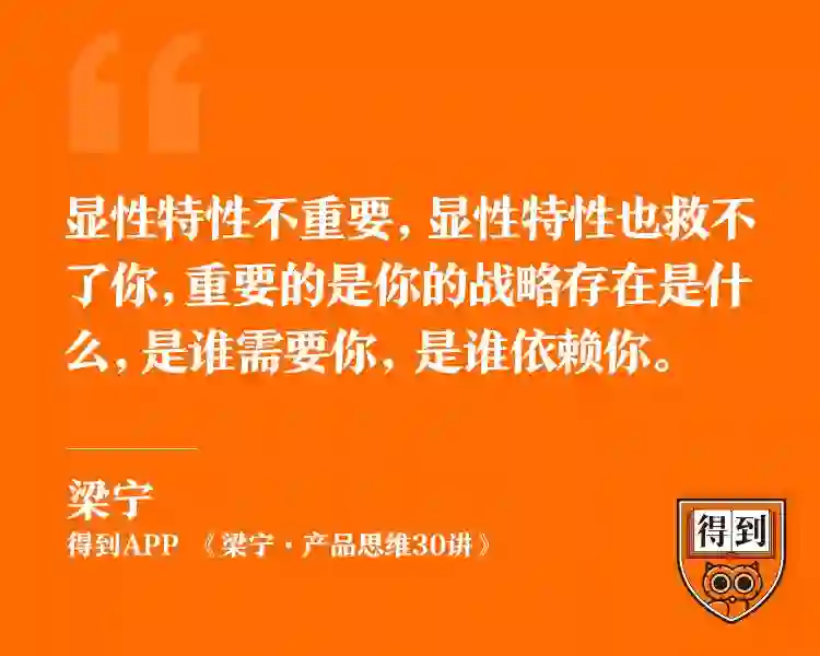 也验证了我在得到App《梁宁·产品思维30讲》里说过的:显性特性不重要,显性特性也救不了你,重要的是你的战略存在是什么,是谁需要你,是谁依赖你。