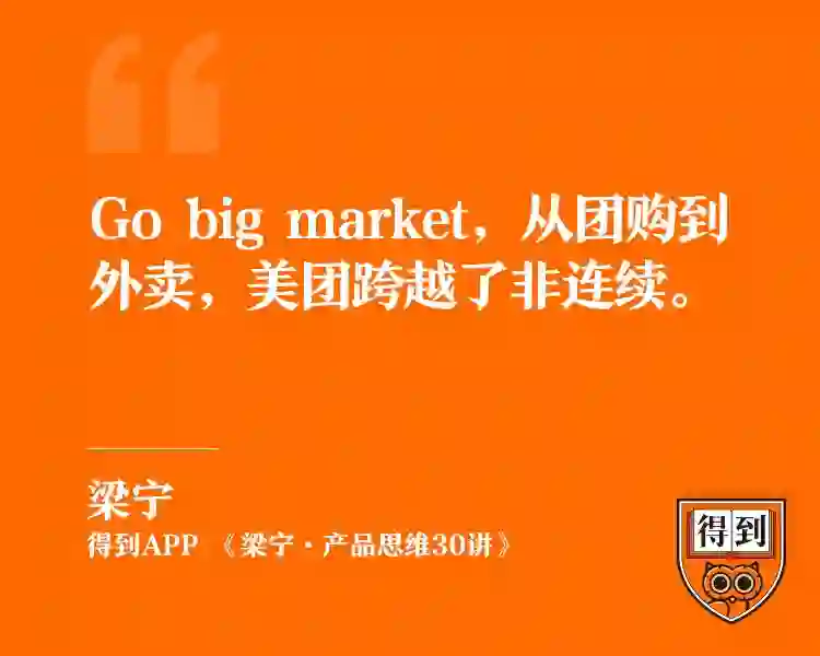所以,go big market。从团购到外卖,美团跨越了非连续。