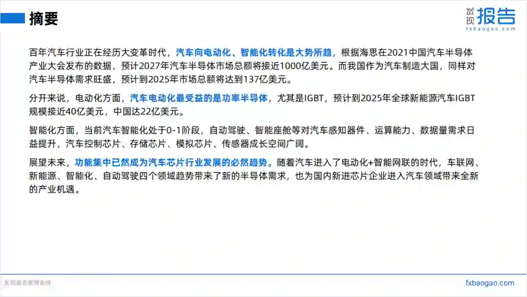 百年汽车行业正在经历大变革时代,汽车向电动化、智能化转化是大势所趋,根据海思在2021中国汽车半导体产业大会发布的数据,预计2027年汽车半导体市场总额将接近1000亿美元。而我国作为汽车制造大国,同样对汽车半导体需求旺盛,预计到2025年市场总额将达到137亿美元。