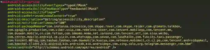 利用安卓辅助服务功能对流行通信和社交APP进行敏感消息窃取,包括微信、 Skype, Viber、QQ等;