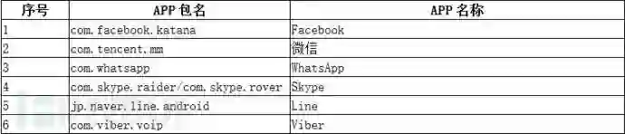 从40多种流行APP中收集个人隐私信息,这些APP包括:微信、Facebook、WhatsApp、 Skype、Line、Viber、QQ、Tango、Telegram、新浪微博、腾讯微博、安卓原生内置浏览器、火狐浏览器、欧朋浏览器、QQ邮箱、网易邮箱、淘宝、人人、飞信、遇见、百度网盘等;