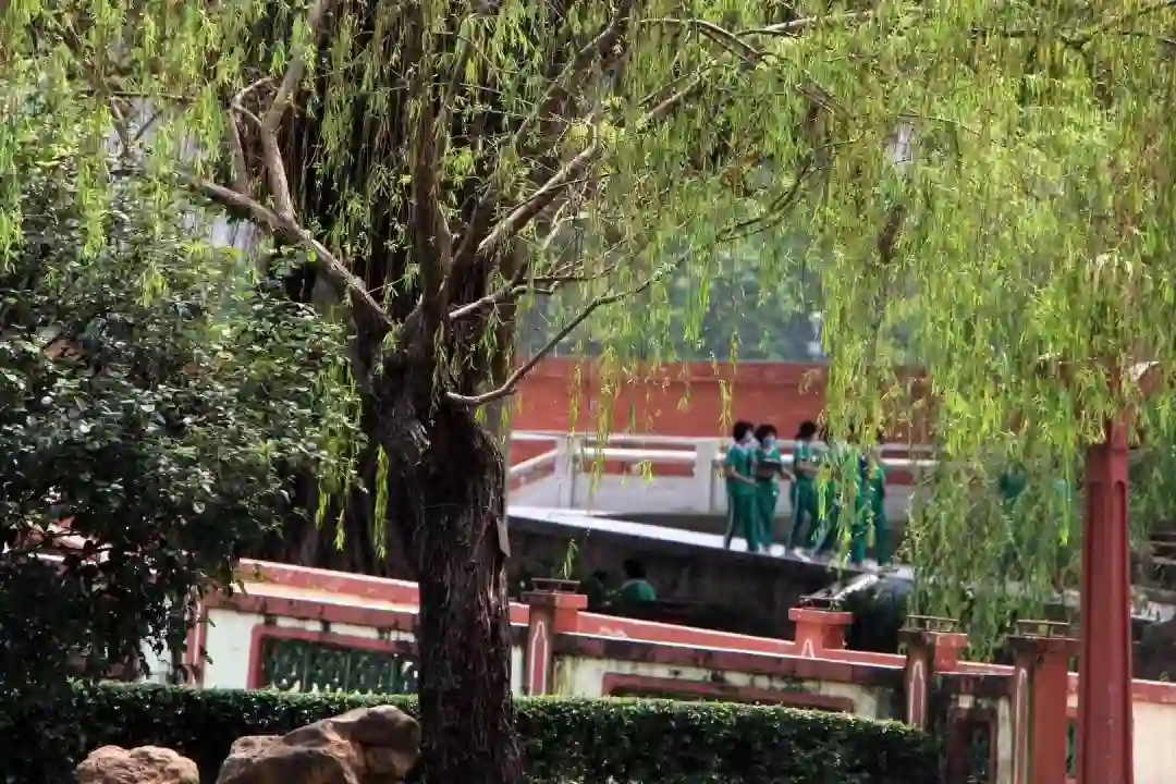 校园外是大城市的喧嚣,而校园内则是红墙绿瓦的古建筑,充满书香气。