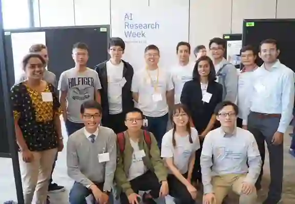 图注:2019年,张晓帆(后排左四)与C3SR师生参与由MIT-IBM Watson AI Lab举办的AI Research Week学术交流活动。