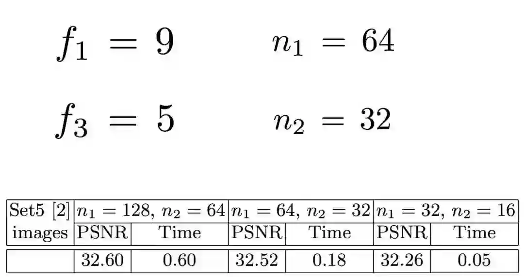 图像重构:恢复细节,得到清晰的高分辨率图像,卷积核为f3*f3;