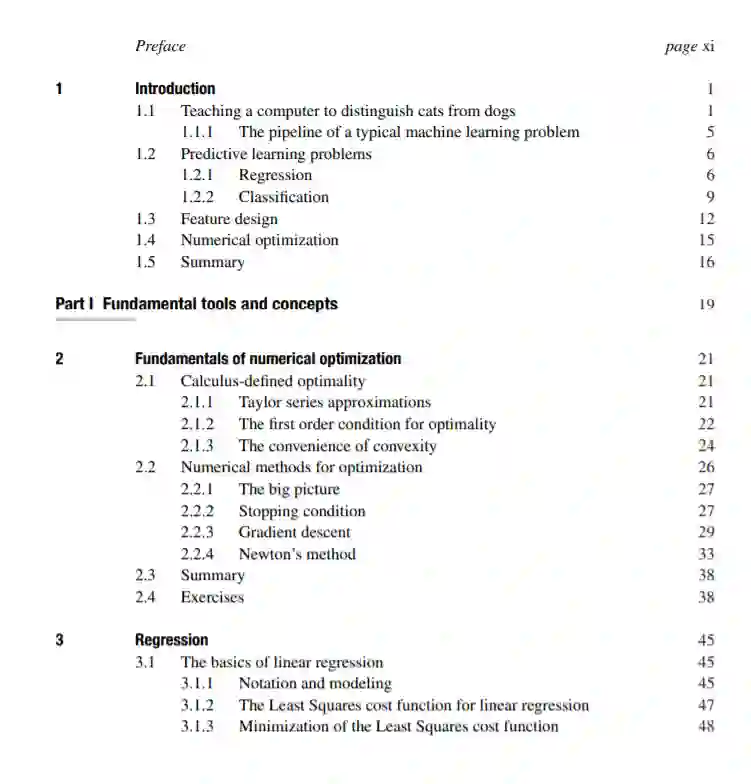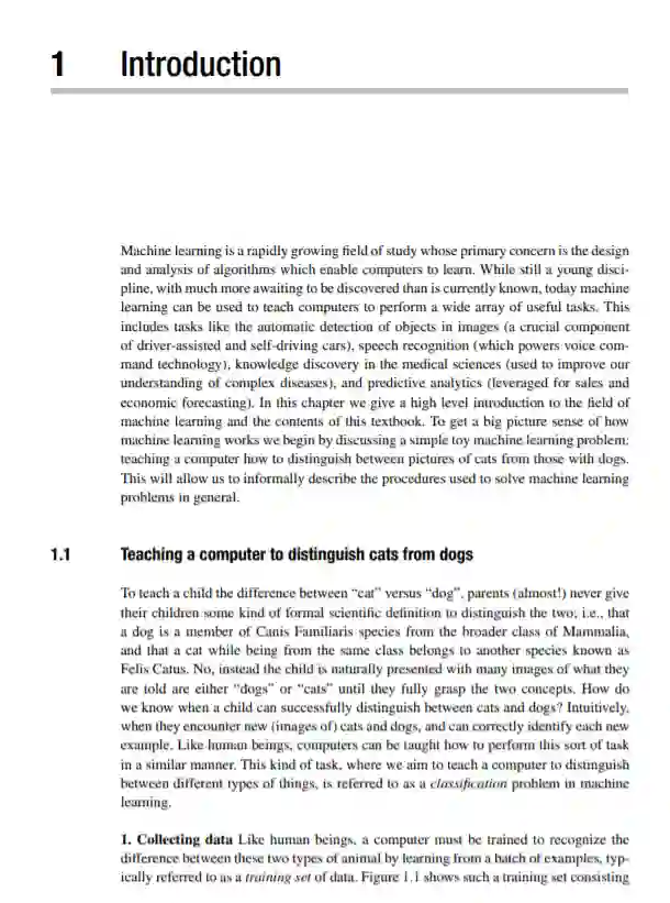 本文采用了一种独特的机器学习方法,它包含了对进行研究、开发产品、修补和玩耍所必需的所有基本概念的全新的、直观的、但又严谨的描述。通过优先考虑几何直观,算法思维,和实际应用的学科,包括计算机视觉,自然语言处理,经济学,神经科学,推荐系统,物理,和生物学,这篇文章为读者提供了一个清晰的理解基础材料以及实际工具需要解决现实世界的问题。通过深入的Python和基于MATLAB/ octave的计算练习,以及对前沿数值优化技术的完整处理,这是学生的基本资源,也是从事机器学习、计算机科学、电子工程、信号处理和数值优化的研究人员和实践者的理想参考。其他资源包括补充讨论主题、代码演示和练习,可以在官方教材网站mlrefined.com上找到。