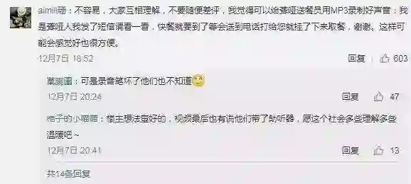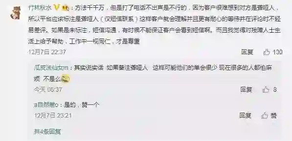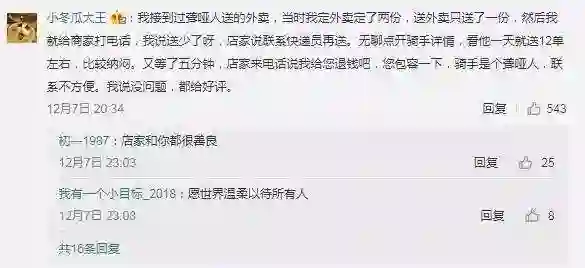 网友“hey你爱吃青椒吗”对于自己当时没有耐心感到十分自责,所以在网上呼吁大家如果遇到这种情况,最好检查一下有没有被忽视的短信,不要急着发脾气给差评,伤害到这些努力工作的特殊人群。