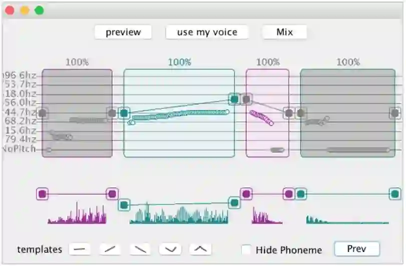 为了应对合成词错误的情况,VoCo 向用户提供多个备用词以供选择。该系统也提供高级编辑器来调整音高和时长,以便进一步优化音质。