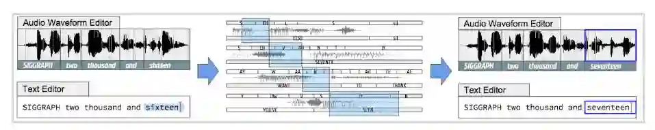 使用传统的软件编辑语音常常涉及到许多低级的人工操作。一些最先进的系统允许用户在语音的转录文本中编辑,并直接在转录文本中执行选择、剪切和粘贴操作;然后这些操作将直接自动应用于对应的声波。然而,对于基于文本的交互界面,一个显然的障碍是编辑转录文本中没有出现过的新词,例如为了强调插入新词或者替换说错的词。虽然当今有很多高质量的语音合成器,面临的挑战在于生成与语音中其它部分相匹配的新词。本论文提出了一种合成新词和短语的系统,该系统能达到新词与语境中其余语音无缝衔接的效果。我们的方法是使用文本到语音(text to speech)的合成器来泛化地生成词对应的语音,然后使用语音转换将其转换为与讲话者相似的语音。操作界面提供了一系列的编辑功能,如支持全自动合成、在一组备选语音中选择、精确控制编辑位置和音高,以及甚至通过用户自己的声音操控。本论文的研究结果表明,该方法的输出优于基线方法的输出,并且输出的语音通常难以与原始语音相区分。