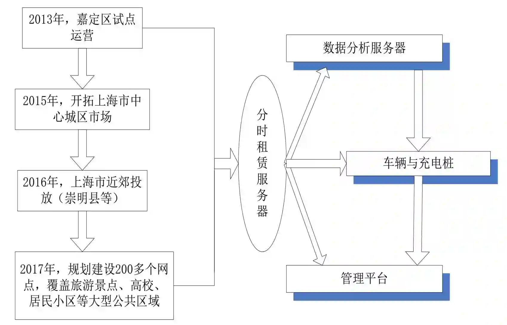 2013 年,在国家科技部与上海市政府的大力推动下,初步形成了嘉定区为核心的电动汽车分时租赁试点[6];