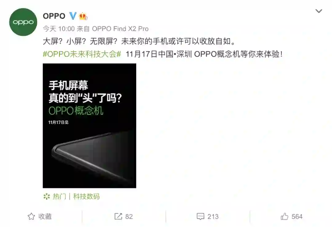 36氪获悉,昨日,OPPO宣布届时将发布概念手机,对外展示OPPO对手机终端形态探索的又一个创新性成果。