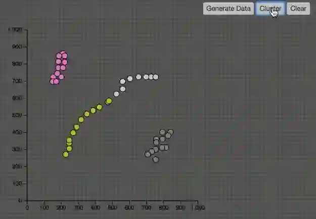 4、重复第二步,直到所有的点都被聚集到聚类中。