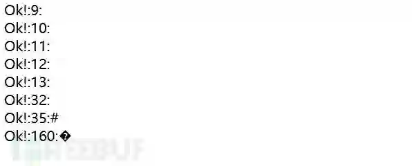 做到这里我们可能会想,除了这些字符外还有没有其它字符可以替换空格呢,我们fuzz一下: