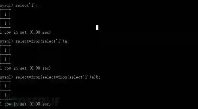 select*from(select*from(select*from(select'1')a2)a3)a4