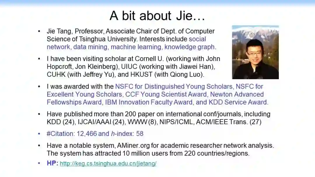 【导读】网络/图是表达能力很强的通用数据结构,可以用来建模许多现实世界中的问题。近几年来,网络表示学习和图神经网络在基础理论上有很大的进步,在自然语言处理、计算机视觉等领域的应用上取得了非常好的效果。本文介绍清华大学唐杰老师的网络表示学习教程。