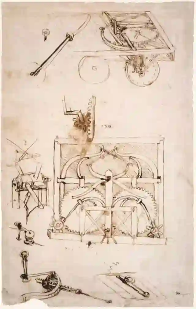 尽管后来达·芬奇从书上学习了诸多军事知识,确实画过许多构思巧妙的军事设备,有的甚至画了超过三十张图,而且细致、精确地画出了各个部位的构件,但其中只有一件最终从他的笔记本走上了战场。在达·芬奇的一生中,有很多这样只停留在构思阶段的从未完成的作品,包括绘画、纪念碑和发明。