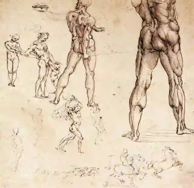 无论是在绘画作品中,还是在笔记本的速写中,达·芬奇对于男性身体的着迷程度远胜于对于女性身体。他笔下的裸体男性透着柔美,很多都是全身像。相比之下,他画的所有女性,除了现已丢失的《丽达与天鹅》,几乎都是穿着衣服的半身像。即便如此,达·芬奇在描绘女性方面依然是一位大师,这一点与米开朗琪罗不同。从《吉内薇拉·德·本奇》到《蒙娜丽莎》,达·芬奇的女性肖像中充满了深切的同情和直抵内心的洞察。
