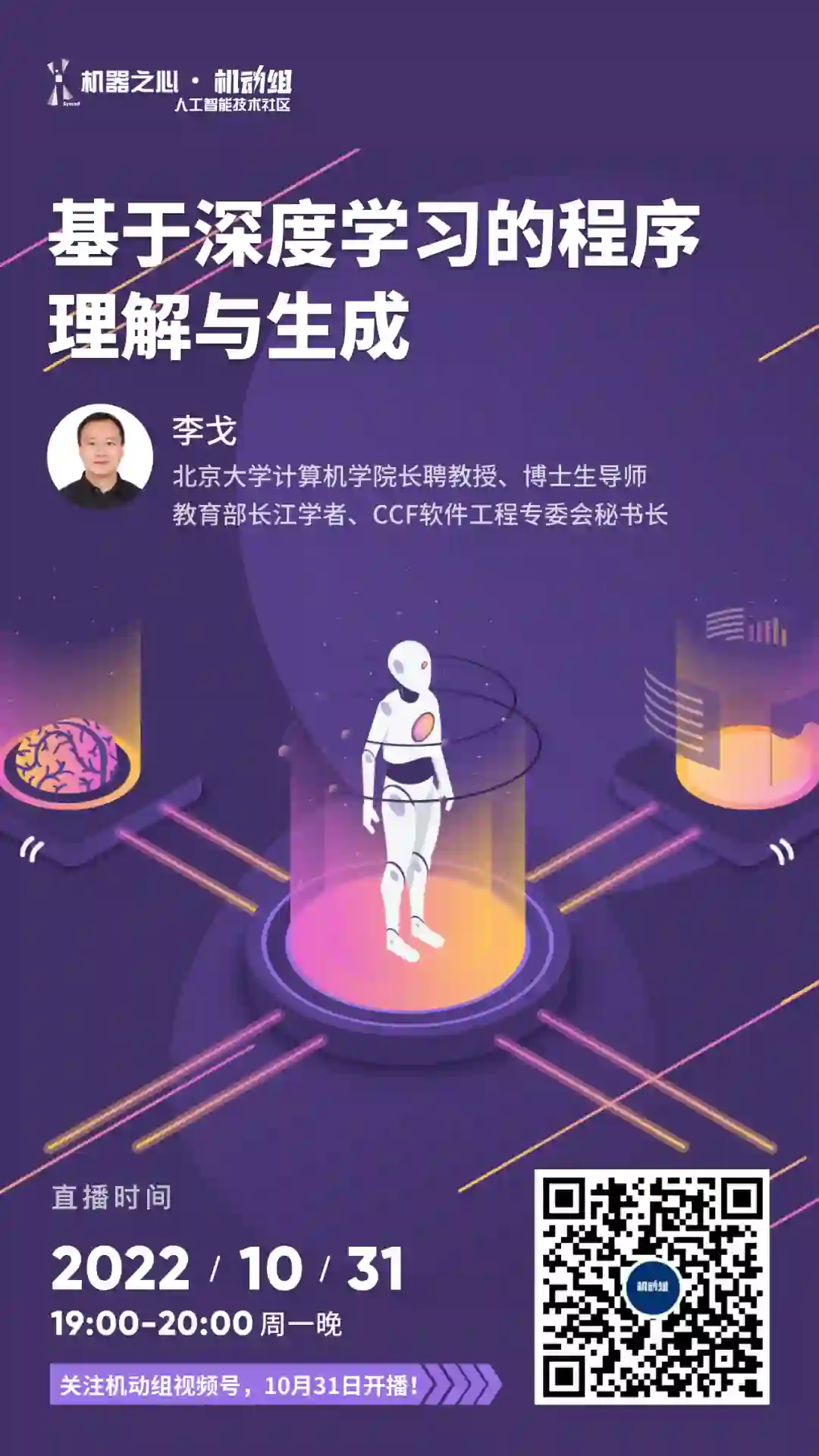 为了进一步了解深度学习在这一领域的应用和存在的问题,北京时间 10 月 31 日 19:00-20:00,机器之心最新一期线上分享邀请到了北京大学计算机学院长聘教授、博士生导师李戈,他将带来主题为《基于深度学习的程序理解与生成》的精彩分享。