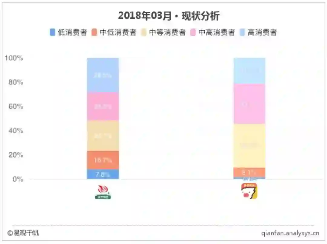 2018年3月艺龙旅行和飞猪旅行用户消费水平图