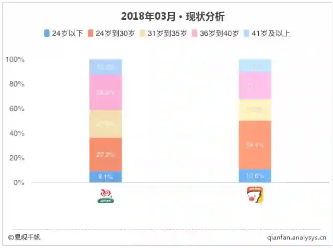 2018年3月艺龙旅行和飞猪旅行用户年龄层次图
