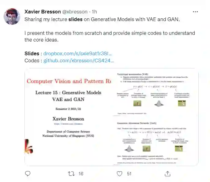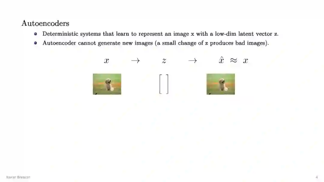 来自新加坡NUS图神经网络大牛Xavier Bresson教授关于生成模型VAE与GAN的总结PPT,全面概括了生成式模型VAE与GAN的应用,非常值得关注!