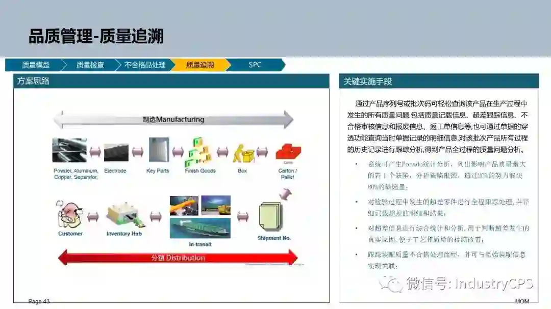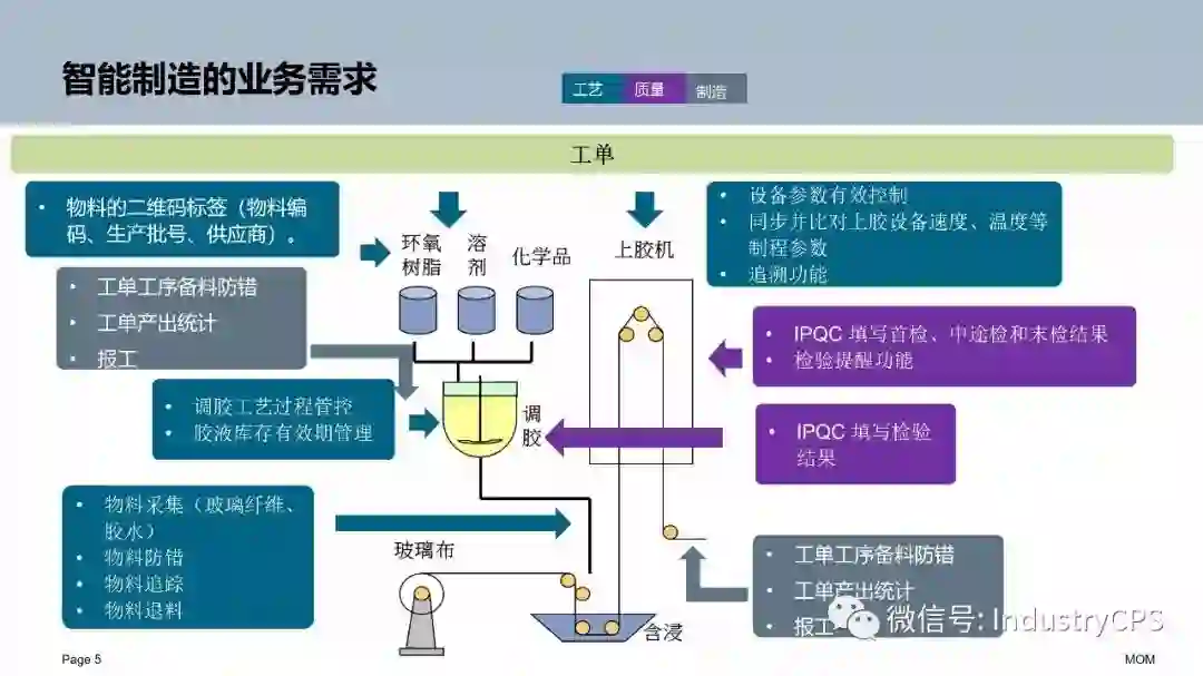 MES就该做第三件事是生产过程的监控。生产过程监控主要是两个方面,一个是任务情况,一个是资源情况。每个生产资源(工人)接到生产指令后何时开始,何时结束?做了多少?质量情况?有什么异常?设备情况?运行数据?这些都是生产现场的数据反馈。这是MES最基本的功能。同时,这也是做好产品的质量管理和质量追溯主要环节。当前热起来的物联网传感器等技术在这里将发挥作用。企业需要的大数据分析应用的主要数据来源也产生在这里。