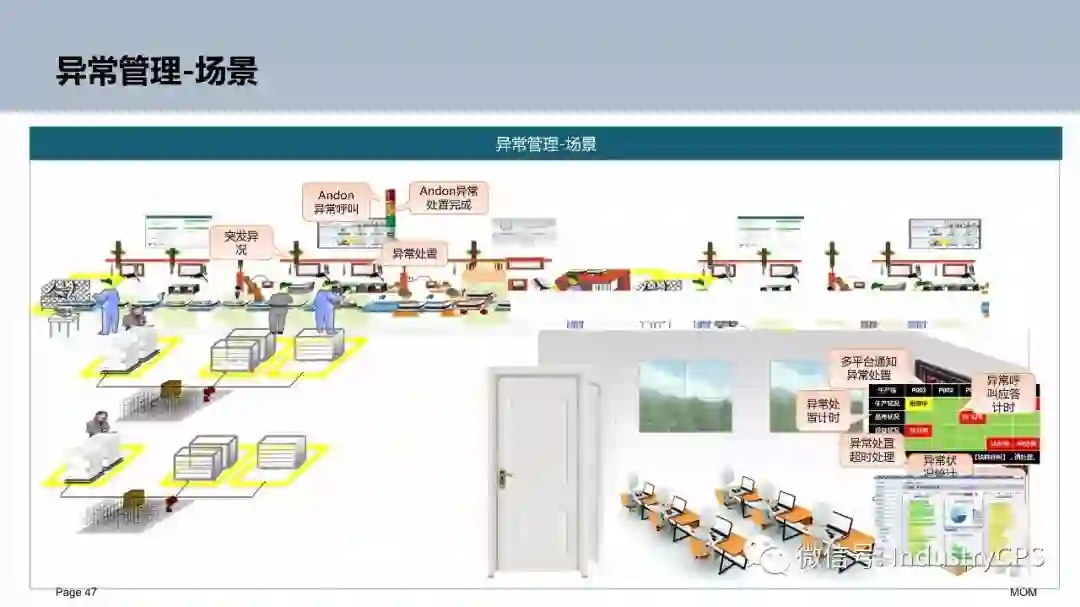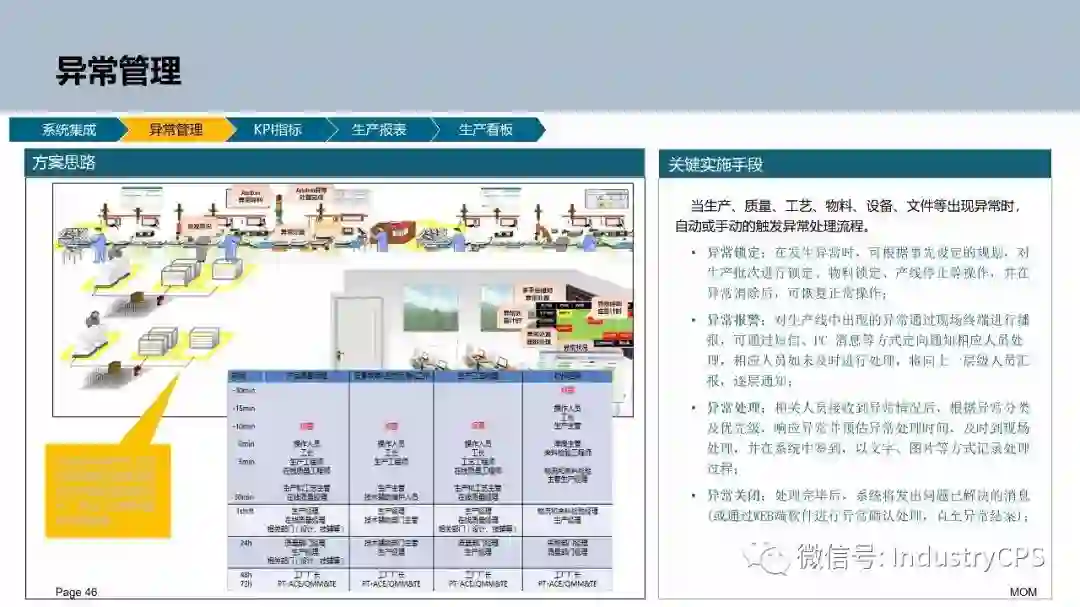 MES的第四件事情是应变和协同。在车间执行生产指令的每天每时都可能发生各种各样的异常变化。这分为主动和被动两种。追赶或调整未能完成计划;市场订单变了,插单、撤单、设计需求改变了;设备故障、物料不到、质量返工等问题都要打乱既定的生产次序。我们就必须重新对生产任务与资源的配置做出决策,以应对这样的问题。生产现场的异变是常态。它每时每刻都影响和决定着生产的效率和效益。通常传统的MES并没有设置一个专门的功能模块,而是把难题甩给了管理人员。生产现场管理的计划员、调度员明天都在如同“消防队员”一样来处理这样的事情。有些企业生产管理人员也常用OA社交一类的工具来做这样的信息沟通。
