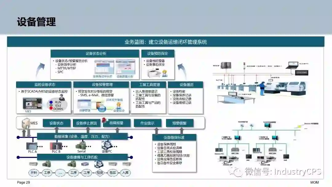 生产任务指令下发到车间,工人就可以干活了。如果生产资源是数控机床和自动化设备,那么系统必须通过PLC、DNC、SCADA等一些中间件、数据接口、控制系统来指挥它们作业。这是指令下达就是通常所说的设备连接,也是当前MES最重要的功能及卖点之一。