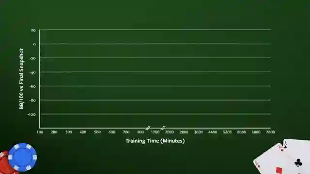 上图显示了在64核CPU训练期间,Pluribus的蓝图策略的改进过程。绩效是根据训练的最终快照来衡量的。