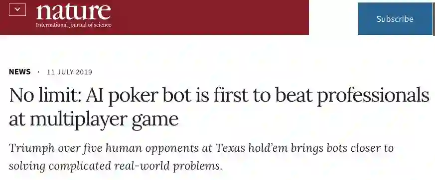 人们发现规则明确的游戏,即使像星际这样战局多变的即时战略游戏,人类也无法战胜拥有碾压性算力优势的计算机。于是有人寄希望于带有运气成分、需要大量心里战的德州扑克。