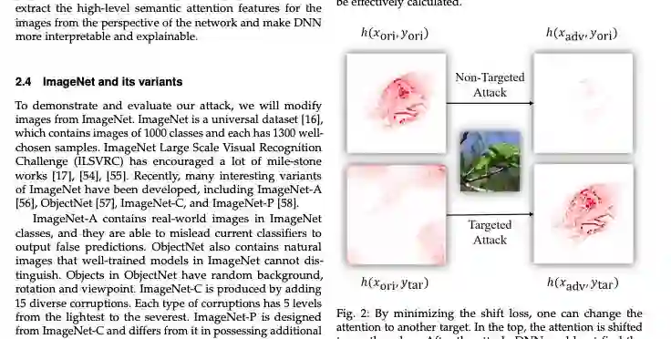 这篇论文研究的是深度神经网络的对抗性攻击。这篇论文提出了注意力集中攻击(Attack on Attention, AoA),这是很多深度神经网络目前会采用的。在不超过10次决策查询的情况下,AoA可以对很多常用的深度神经网络达到接近100%的成功率。这篇论文应用AoA在ImageNet上生成了96020个对抗样本,并且将这些样本组成的数据集命名为DAmageNet。在这个数据集上,这篇论文测试了20个深度神经网络,当它们没有对抗训练时,错误率都超过90%。通过DAmageNet这个数据集的提出,可以为未来的深度神经网络的鲁棒性研究提供一个新的基准。