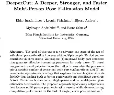 论文名称:DeeperCut: A Deeper, Stronger, and Faster Multi-Person Pose Estimation Model