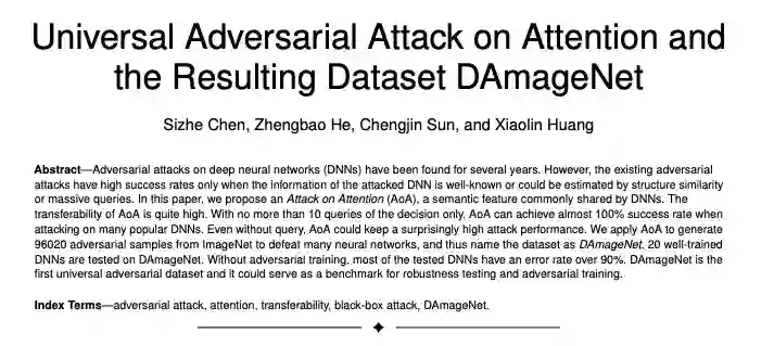 论文名称:Universal Adversarial Attack on Attention and the Resulting Dataset DAmageNet