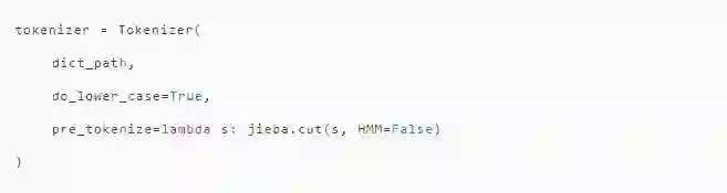 其中pre_tokenize为外部传入的分词函数,如果不传入则默认为None。简单起见,WoBERT使用了结巴分词,删除了BERT自带词表的冗余部分(比如带##的中文词),然后加入了20000个额外的中文词(结巴分词自带的词表词频最高的两万个),最终WoBERT的vocab.txt规模是33586。