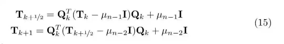 是从该块计算的两个特征值。这些移位系数被称为Wilkinson移位[48]。获得移位后,我们可以用双移位重新构造 QR 迭代: