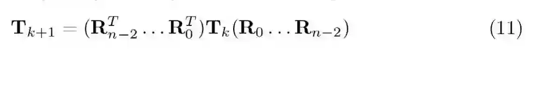 对于 Givens 旋转,它只影响相邻的 4×4 块。我们可以通过在邻域的 4×4 旋转区域上应用矩阵乘法来节省计算预算。这将旋转的时间从 O(2