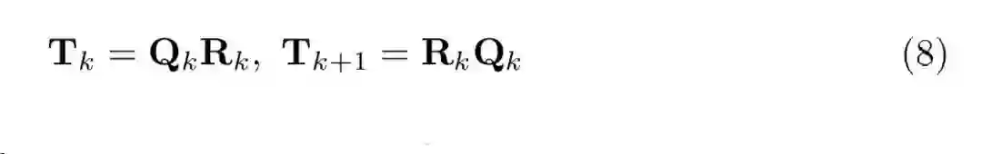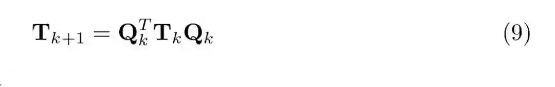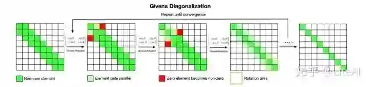 R)。如图 3 所示,通过旋转角度的设计,在 T 上应用连续 Givens 旋转可以保持三对角形式但减少非对角元素的大小。沿对角线移动的顺序 Givens 旋转形成一次 QR 迭代: