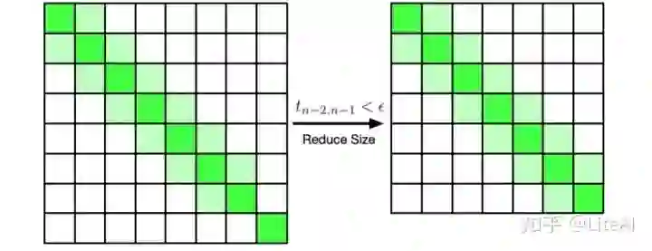 我们可以利用这一性质通过逐渐减小矩阵维数来加快计算速度,即在一次迭代后将矩阵缩小 T∈
