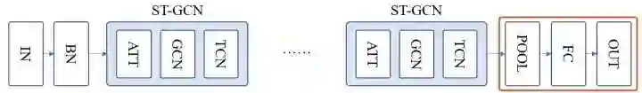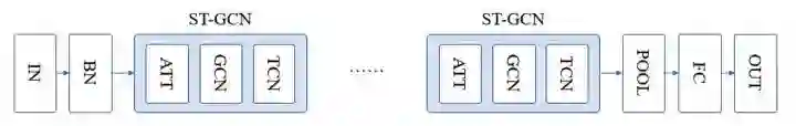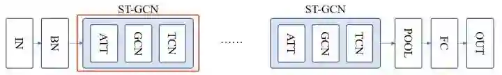 接着,通过 ST-GCN 单元,交替的使用 GCN 和 TCN,对时间和空间维度进行变换: