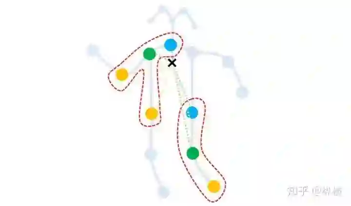 第 2 部分连接了更为靠近重心的邻居节点(蓝色节点),包含了向心运动的特征。