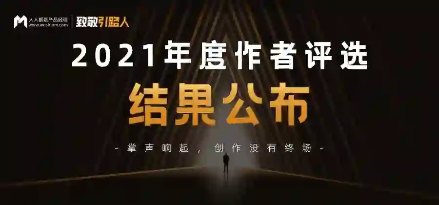 为了感谢每一位内容创作者的辛苦付出,人人都是产品经理举办了2021年度作者评选,向这些优秀的引路人致敬!