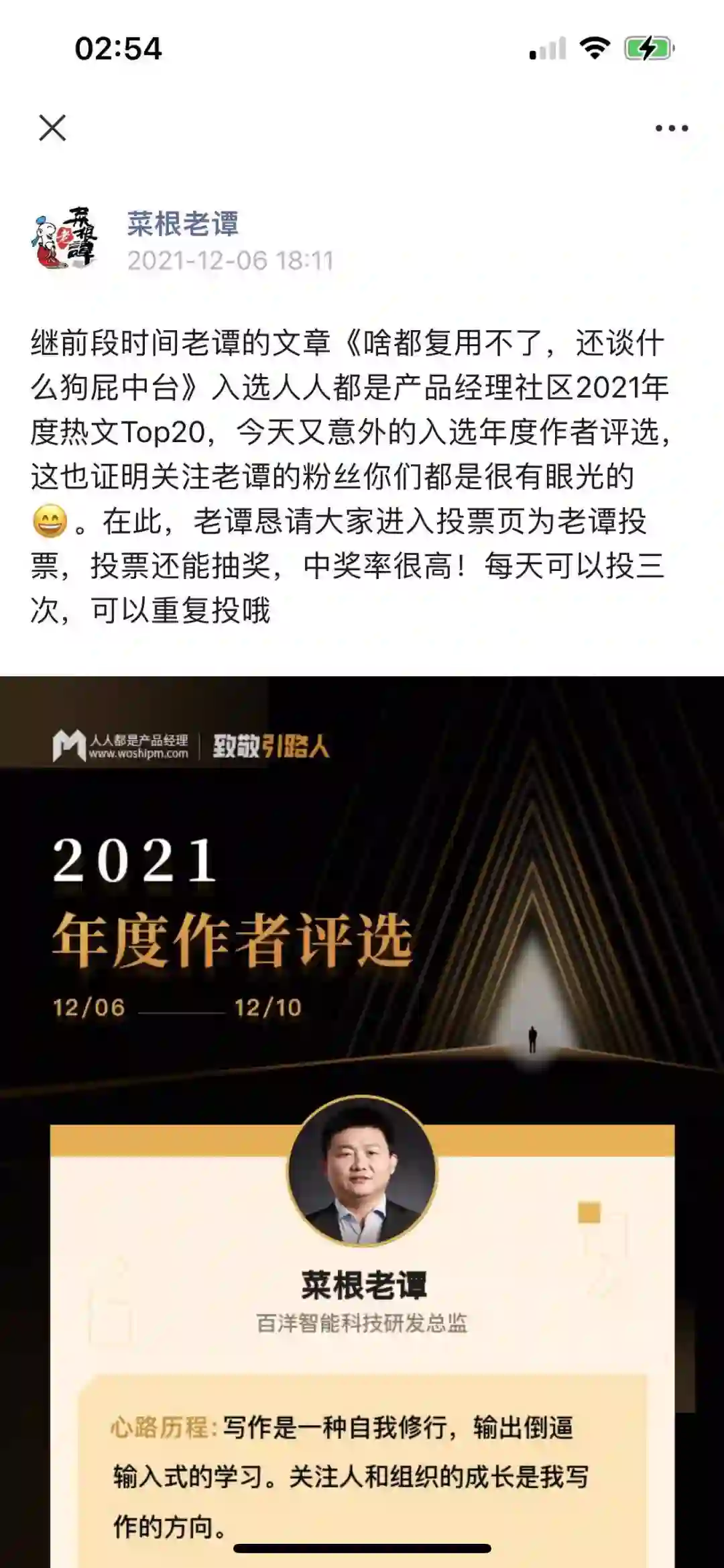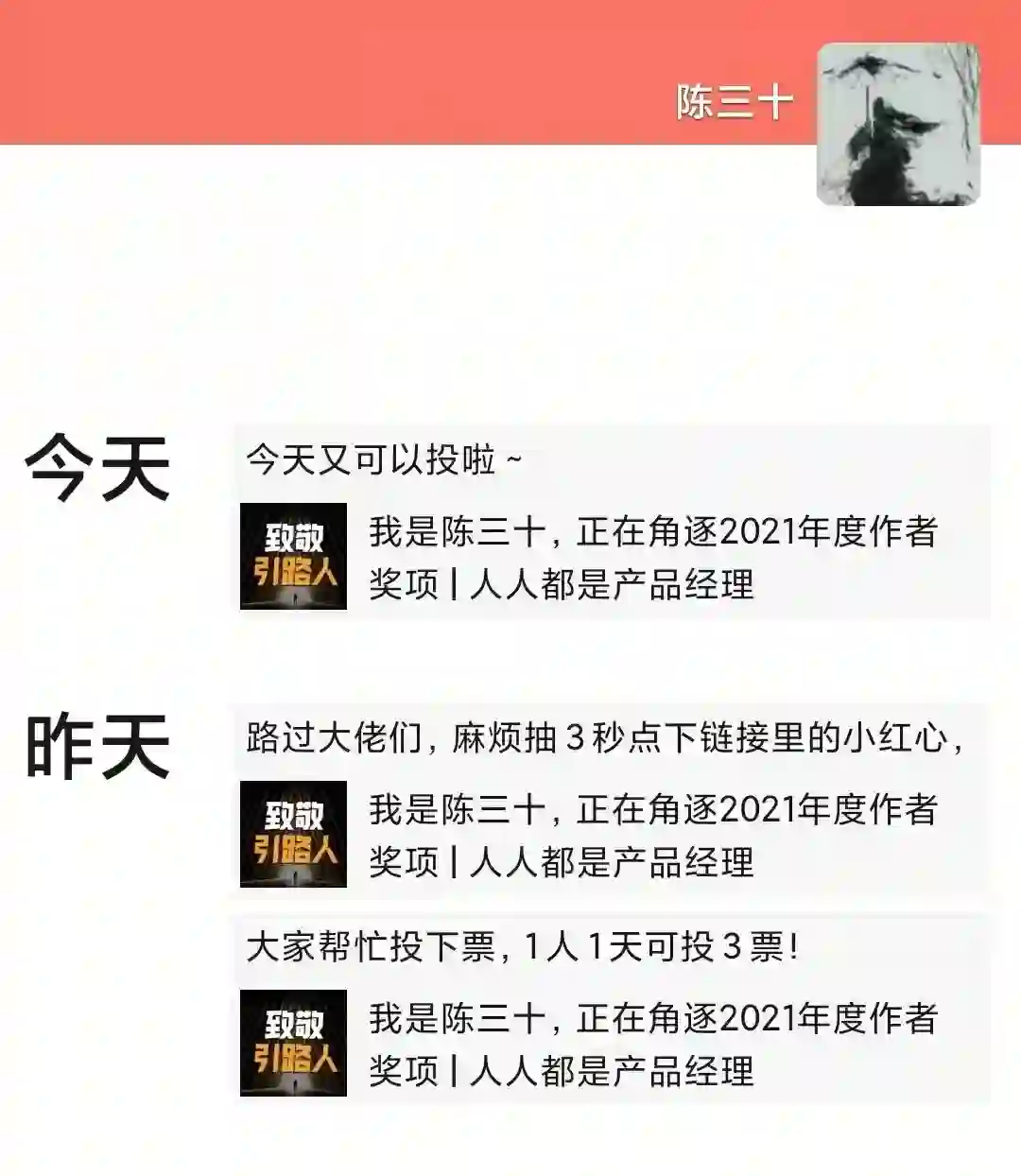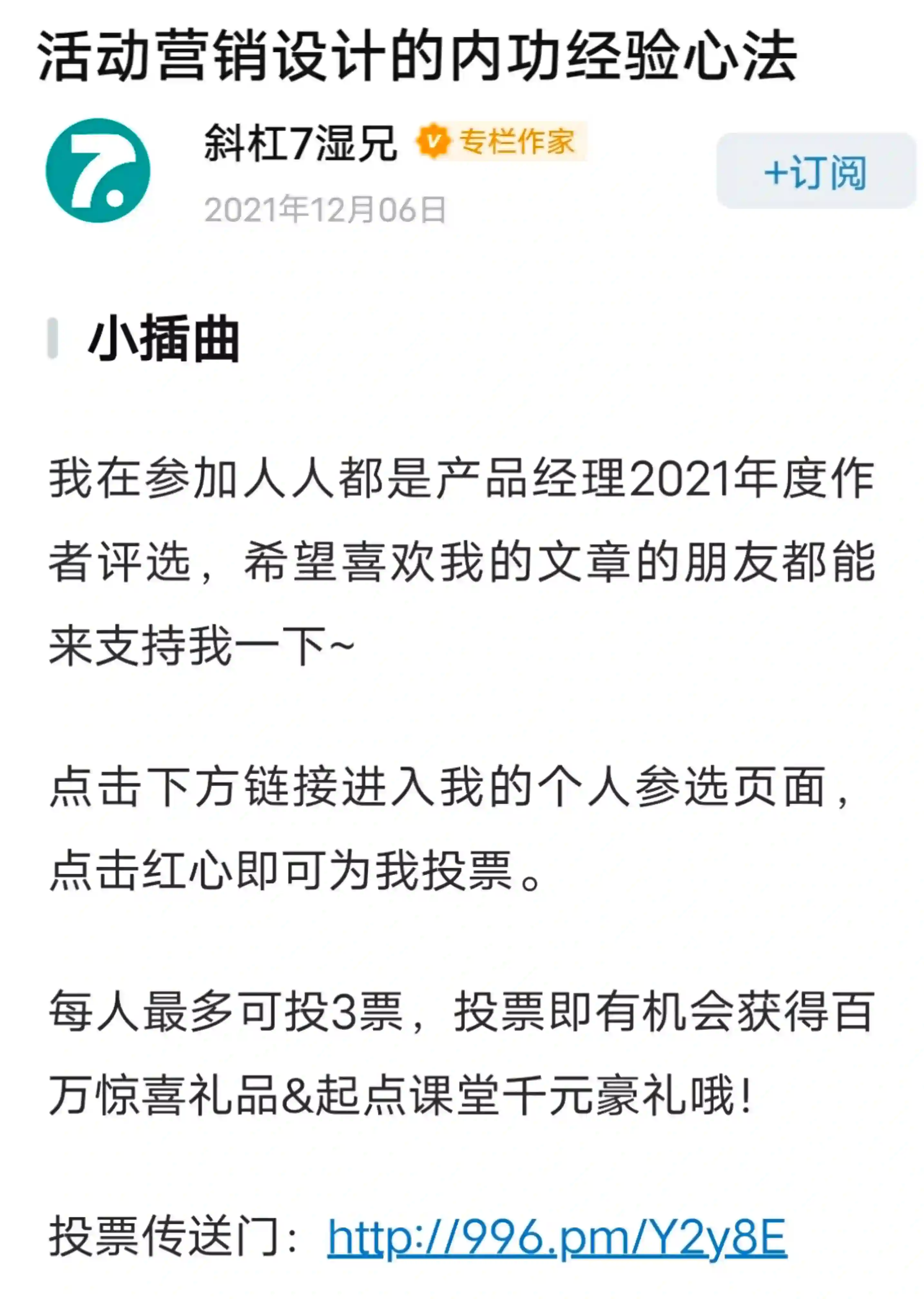 有的作者在自己的公众号发布推文,号召读者投票: