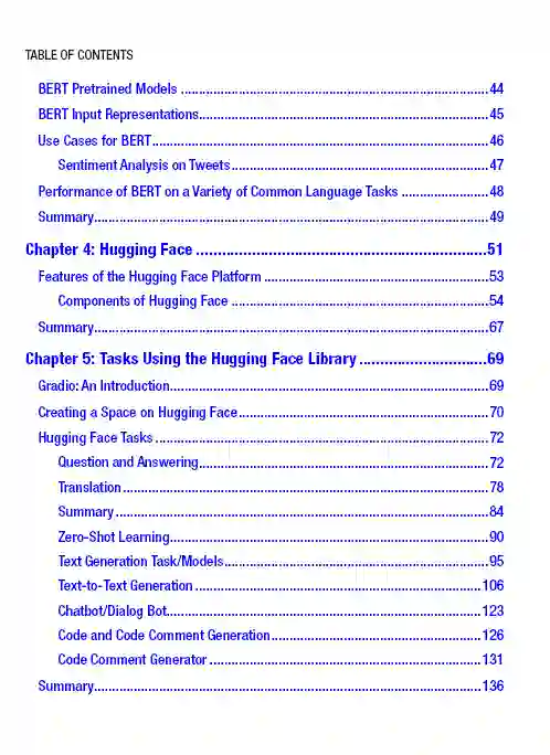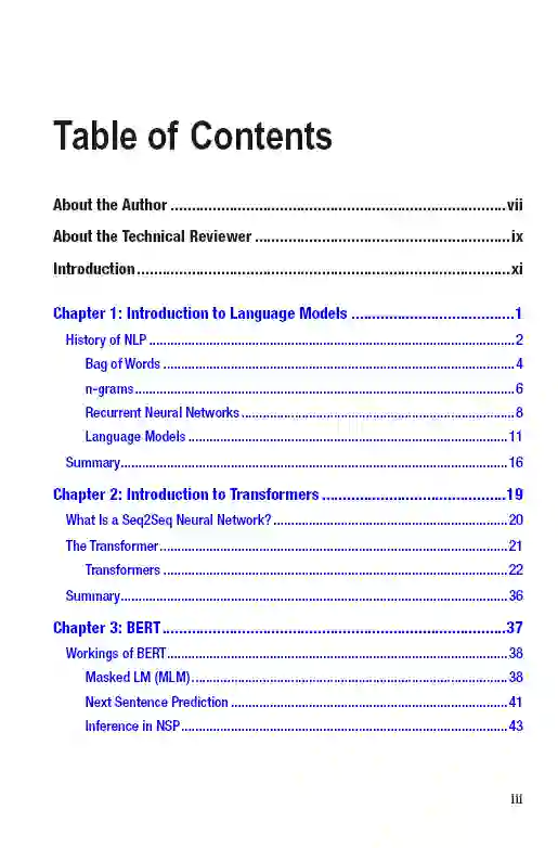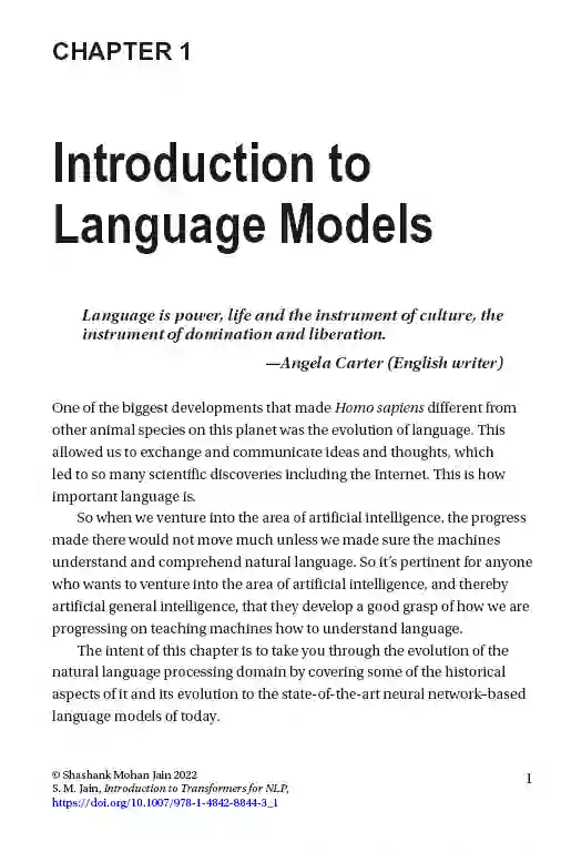 本书涵盖了Transformer体系结构及其在自然语言处理(NLP)中的相关性。它首先介绍NLP和从n-grams到基于transformer的体系结构的语言模型的进展。接下来,它提供了一些使用谷歌colab引擎的基本转换器示例。然后,介绍了hug Face生态系统及其提供的不同库和模型。接下来,本文通过一些示例解释了诸如谷歌BERT之类的语言模型,然后深入介绍了hug Face API,使用不同的语言模型来处理诸如句子分类、情感分析、摘要和文本生成等任务。