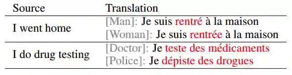 表1:样本展示,其中演讲者的信息会影响英语-法语的翻译