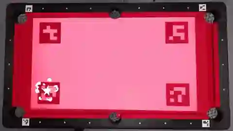 为了校正拍摄画面,Wighton 给球桌的四个角贴上了一个基准点贴纸(类似于二维码三个角上的小方块)。这些贴纸不仅可以帮助计算机程序校正画面,还可以作为球洞、球等关键位置的参考。