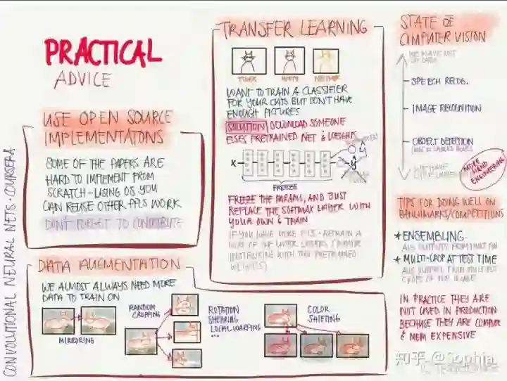 吴恩达在推特上展示了一份由 TessFerrandez 完成的深度学习专项课程信息图,这套信息图优美地记录了深度学习课程的知识与亮点。因此它不仅仅适合初学者了解深度学习,还适合机器学习从业者和研究者复习基本概念。这不仅仅是一份课程笔记,同时还是一套信息图与备忘录。