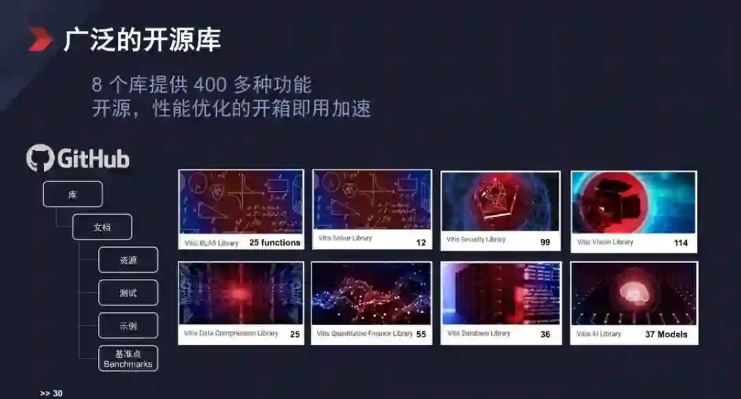 这些库共提供超过 400 种开源应用,并针对硬件进行了优化,借助这些库,软件开发者可以使用标准的应用编程接口(API)来实现硬件加速。