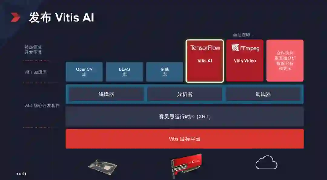 她强调,Vitis 软件平台最大的优势,是可以根据客户的软件来通过 Vitis 平台生成高效率的终端,满足其业务的需求。另外,Vitis 也解决了统一云端与边缘计算不同场景下的代码部署问题,支持软硬件开发者更有效地利用所有可用的计算资源,从而大幅提高开发效率。