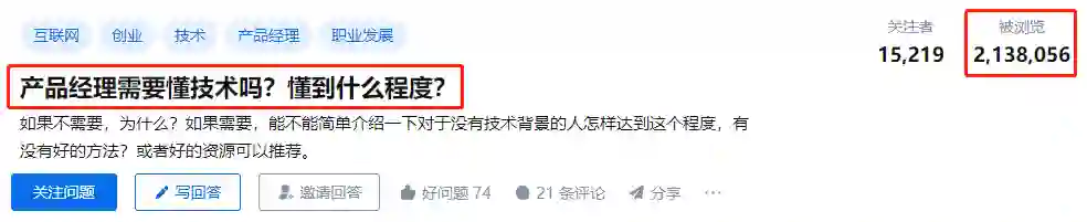最近在知乎看到一个关于“产品经理需不需要懂技术”的话题,点击进去发现,这个话题的浏览人数居然高达200W+。