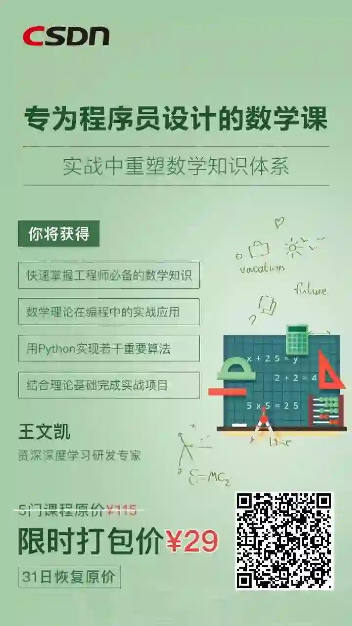 对了,目前课程上线一个月内享受的是早鸟价,使用优惠码【pyq08】仅售24元,截止至本月底将会恢复原价115元,还有不到8天的时间,想要学习数学的,建议尽快:扫描下方二维码报名![]()