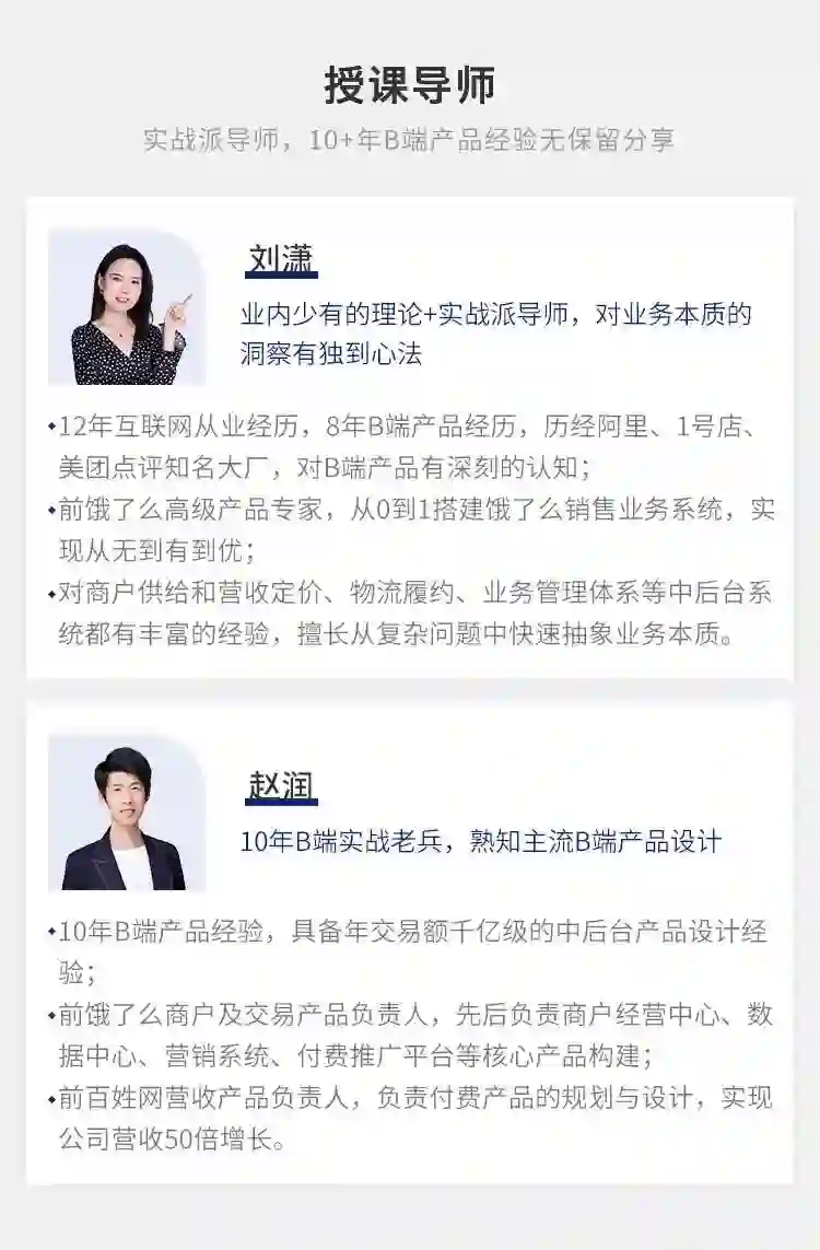 3、2位拥有10年+B端实战经验的老师,带你征战B端产品
